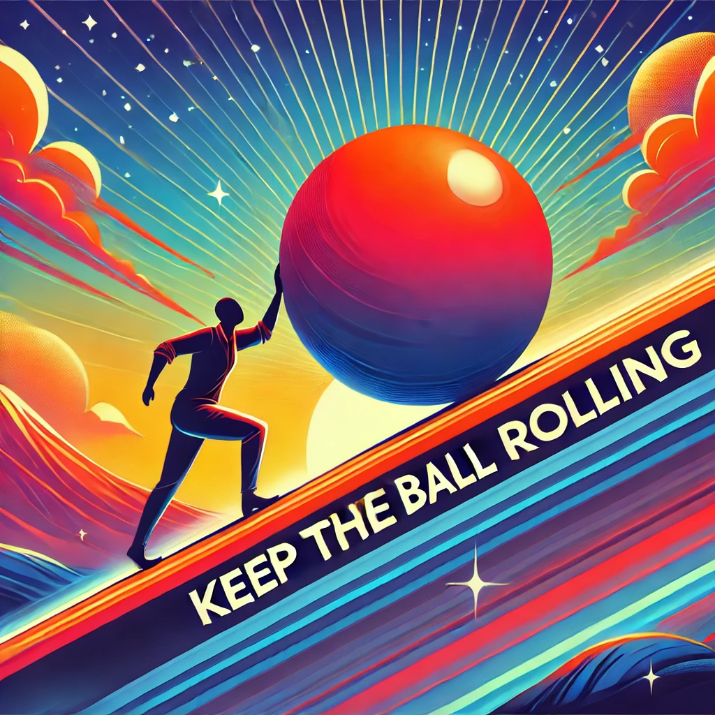 "Keep the Ball Rolling"은 작업의 지속성과 꾸준함의 중요성을 강조합니다. 이를 통해 팀은 목표를 향해 안정적으로 나아가고, 작업의 일관성을 유지할 수 있습니다.