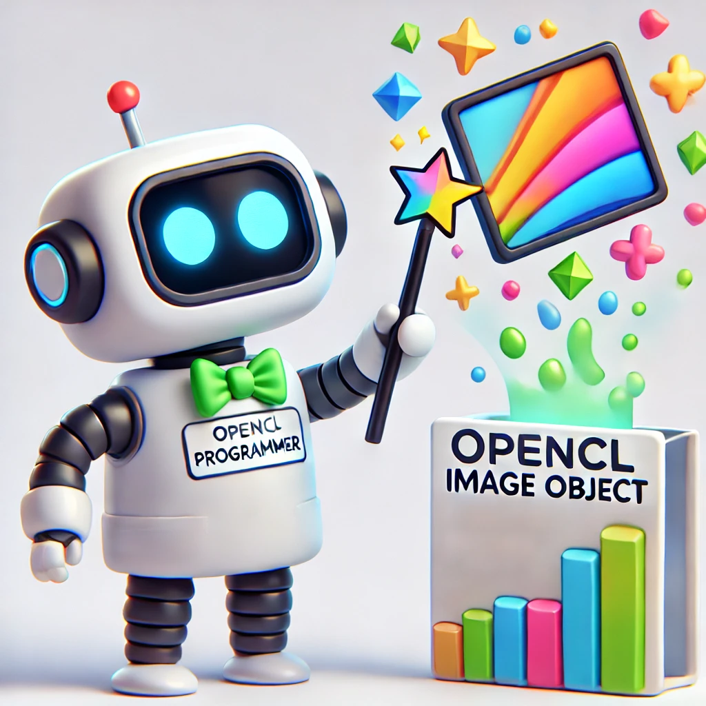 이전 글에서 이미지 객체를 다루는 법을 간략히 언급했는데, 이미지 객체를 생성할 때는 clCreateImage (C API) 또는 C++ Wrapper를 통해 cl::Image2D를 사용할 수 있습니다. 이미지의 포맷(CL_RGBA, CL_UNORM_INT8 등)과 크기(width, height), 접근 권한을 지정한 뒤 컨텍스트를 기반으로 이미지를 만듭니다.