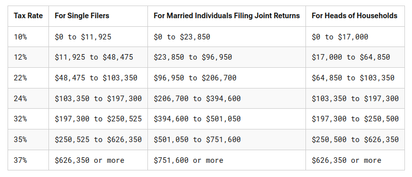 2025년 (https://taxfoundation.org/data/all/federal/2025-tax-brackets/):