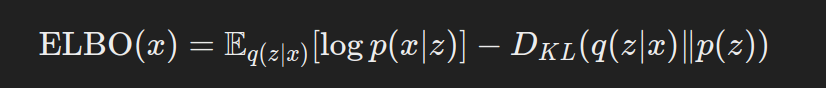 VAE의 학습은 변분 추론으로 이루어집니다. 우리가 궁극적으로 원하는 것은 p(x)를 최대화하는 것이지만, 직접 다루기 어려우므로 ELBO(Evidence Lower Bound)라는 하한을 최대화합니다.