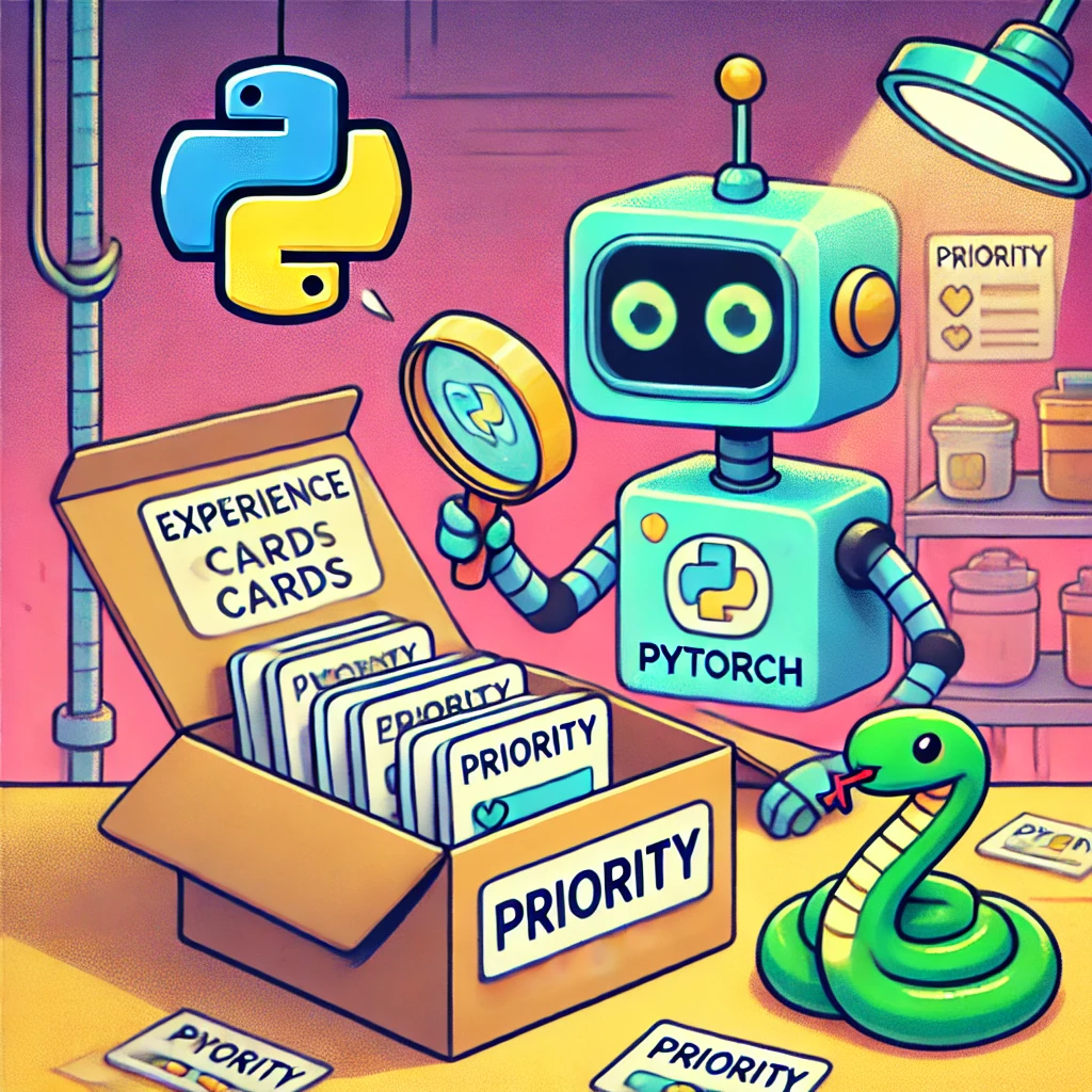 아래 예제는 Segment Tree를 단순화한 형태로 구현한 PrioritizedReplayBuffer 클래스를 보여줍니다. 여기서는 Double DQN 코드 기반으로 수정 가능하며, 완전한 최적화보다는 개념 이해에 초점을 둡니다.