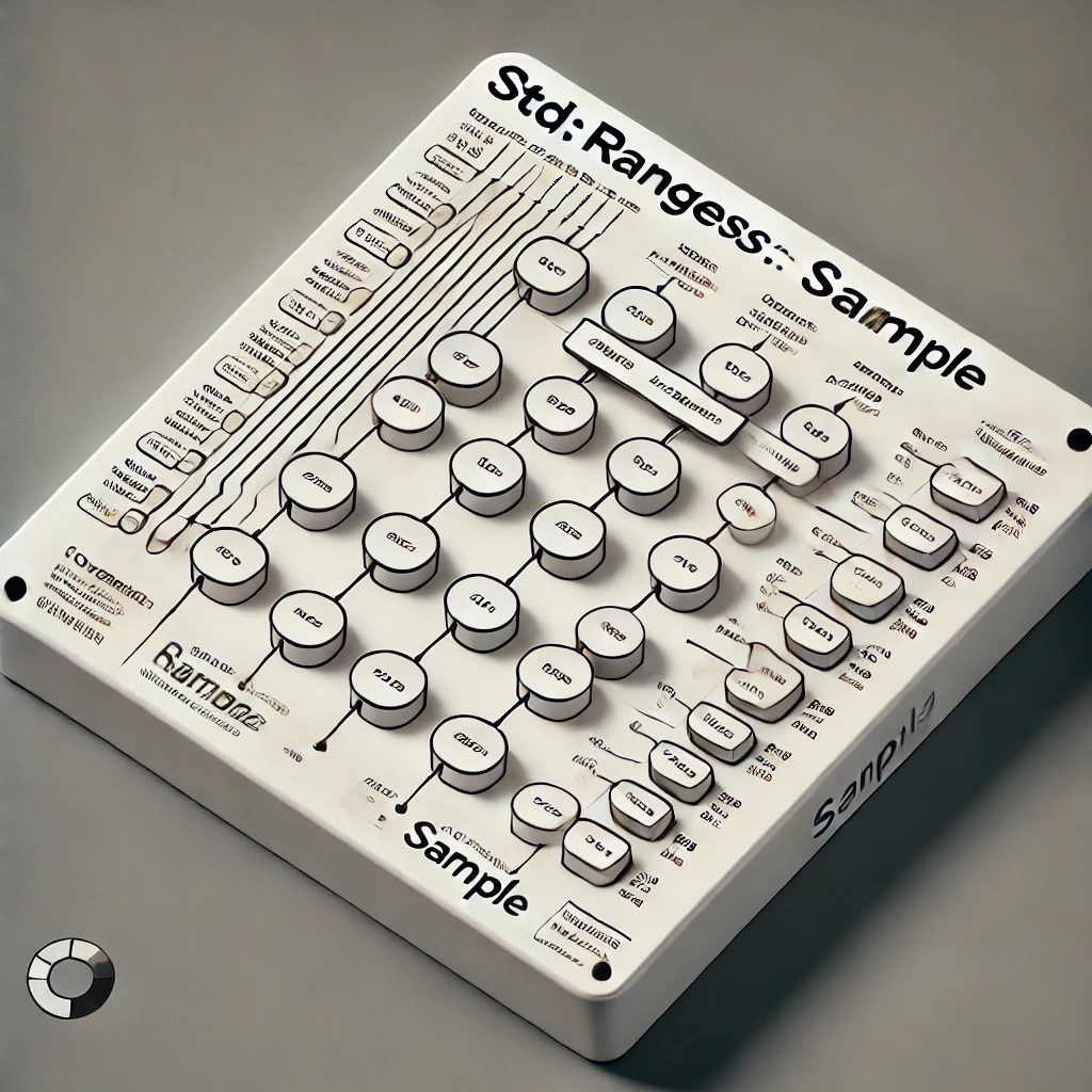 std::ranges::sample(rng, out, n, gen)는 범위 rng에서 원소를 n개 무작위로 선택하여, 그 결과를 out 출력 반복자에 저장하는 알고리즘입니다. gen은 난수 발생을 위한 엔진 또는 어댑터를 전달합니다. 이는 기존의 <algorithm> 헤더에 있는 std::sample 함수에 해당하는 범위 기반(std::ranges) 버전으로, C++23에서 추가되었습니다.