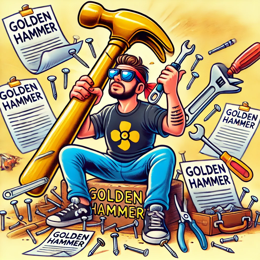 → *"This team always tries to use microservices, no matter the problem—it’s a golden hammer scenario."* - "React를 잘 안다고 해서 모든 프로젝트에 React를 쓰려는 건 Golden Hammer에 불과해."