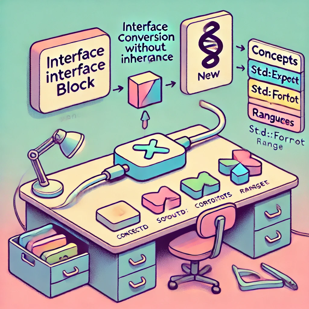 C++20 이상에서는 Concepts, 람다, std::function, std::expected, std::format, coroutine, Ranges 등을 활용해 상속 없이도 인터페이스 변환을 간결하게 구현할 수 있습니다. 이를 통해 에러 처리, 비동기 지원, 로깅, 조건부 변환, 파이프라인 처리 등 다양한 요구사항에도 쉽게 대응 가능하며, 전통적 구현 대비 훨씬 적은 코드와 더 나은 유지보수성, 확장성을 확보할 수 있습니다.