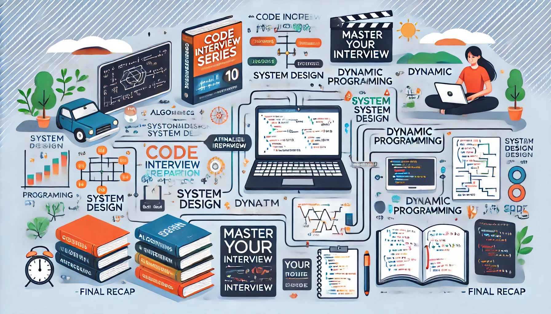 여러분, 코딩 인터뷰를 준비하는 여정은 길고 험난할 수 있습니다. 알고리즘과 자료구조, 동적 프로그래밍, 그리디, 고급 문자열 알고리즘, 시스템 설계까지, 다양한 주제와 개념을 익히고 숙달해야 하는 과정에서 “정말 이게 다 필요할까?”, “어떻게 하면 더 효율적으로 준비할 수 있을까?”라는 고민을 하실 텐데요. 이 글에서는 그동안 살펴본 다양한 주제들을 총체적으로 정리하고, 추가 학습 방안과 참고 자료를 제안함으로써 여러분이 앞으로 더 체계적이고 자신감 있게 인터뷰 준비를 해나갈 수 있도록 도움을 드리려고 합니다.