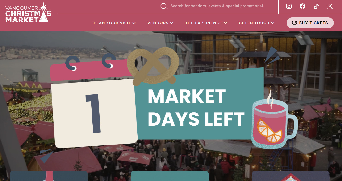 벤쿠버 크리스마스 마켓은 2024년 11월 13일부터 12월 24일까지 Jack Poole Plaza에서 열립니다. 이 마켓은 독일 전통 크리스마스 마켓에서 영감을 받아 만들어진 행사로, 90개가 넘는 아기자기한 목조 부스에서 수공예품, 독일 전통 장식품, 맛있는 음식과 음료를 만나볼 수 있어요.